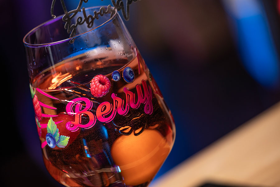 Bedruckt mit einem erhaben 3D-Effekt und spritzigen Dekor macht das Glas Laune auf Mehr.