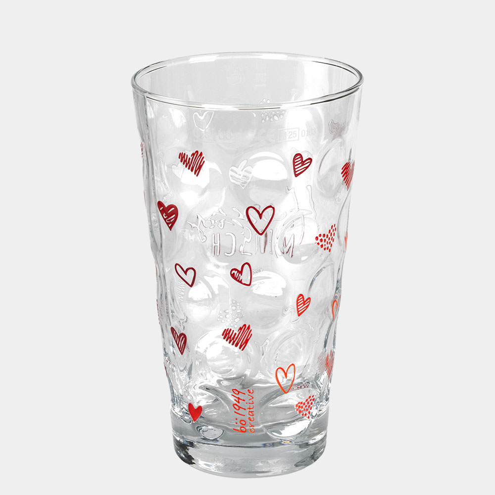 Das Glas ist zwar spülmschinengeeignet, aggressive Reiniger oder hohe Temperaturen können den Aufdruck jedoch auf Dauer verblassen lassen.