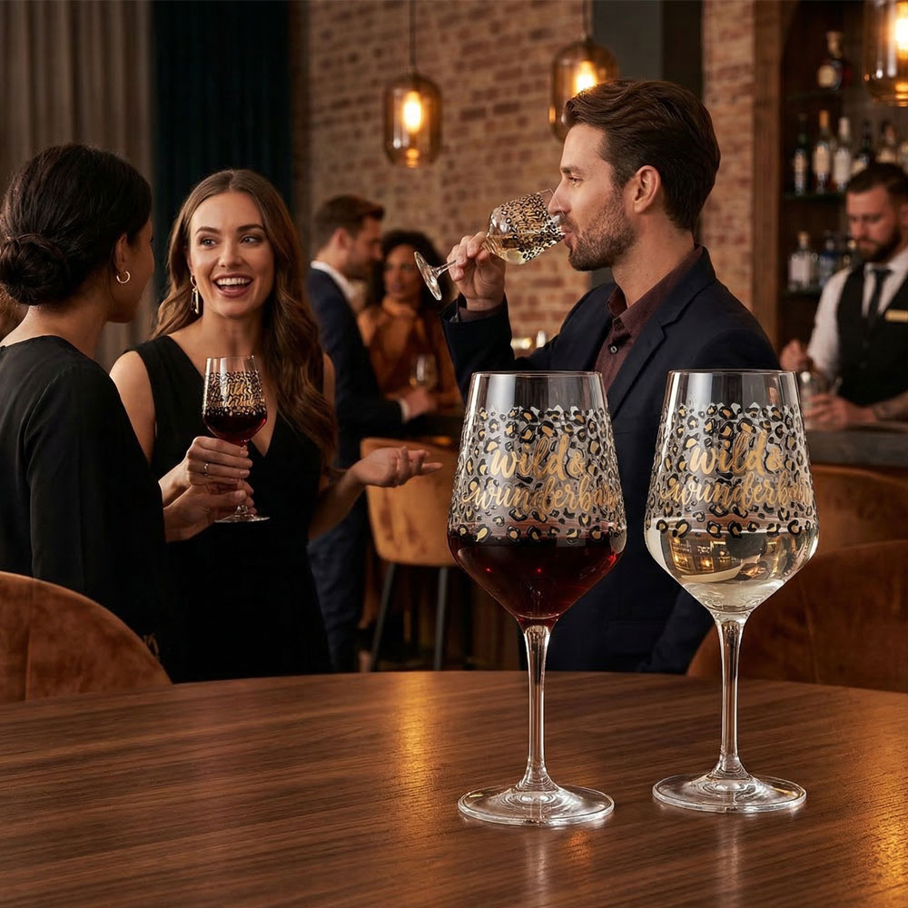 Gefertigt aus hochwertigem Glas und in klassischer Stilglas-Form, sorgt es für ein angenehmes Trinkerlebnis und bringt das Aroma deines Lieblingsweins perfekt zur Geltung. Das Highlight ist das kunstvolle 3D-Leomuster, das dem Glas eine faszinierende Tiefe und einen modernen, trendbewussten Look verleiht.